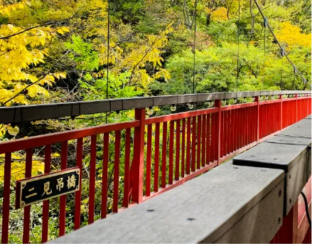ツアー途中には、写真映えする名所「錦橋」にも立ち寄ります。夏は緑に映える赤い橋、秋は紅葉に溶け込む景観が見どころ。特に豊平川沿いは紅葉の名所として知られ、水上から望む景色は格別です。