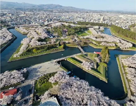 函館の名所・五稜郭は、春になると約1,600本の桜が一斉に咲き誇ります。星形の堀を彩る桜並木は、散策やボート遊びで間近に楽しめるのが魅力。歴史と自然が調和した特別な景色は、訪れる人をやさしく包み込みます。